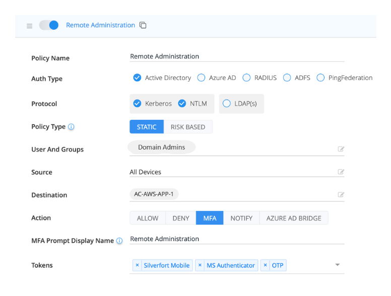 Yes. With Silverfort you can easily protect all the different services that are accessed by domain admin users, such as PSexec, Remote Powershell, RDP, Database, etc.