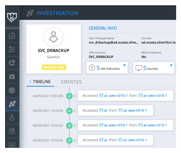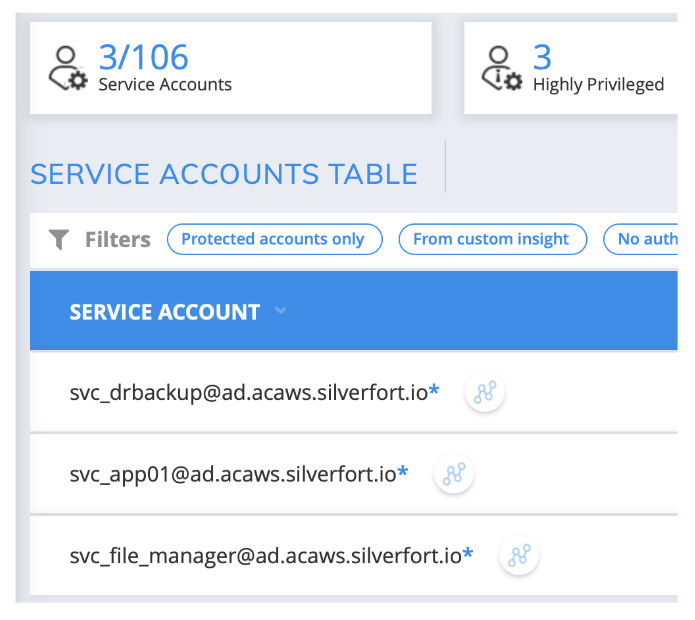 Gain automatic and comprehensive visibility into all your service accounts and non-human identities, including the ones you’re not aware of, as well as real-time insights into their activity and risk level.