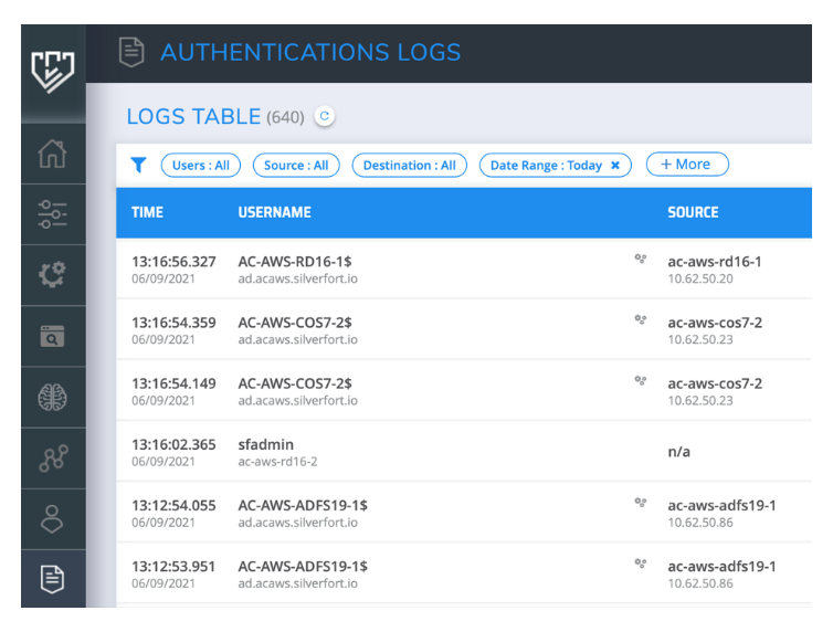 An IAM provides granular and comprehensive visibility to the authentications it controls (AD for on-prem, cloud IDP or Federation for SaaS\web apps, etc.). However, no IAM can provide this visibility to authentications controlled by its peers. In today’s hybrid environment, where there are often three or more IAM solutions in parallel, this means that no single IAM can provide centralized visibility into all authentications. Silverfort, on the other hand, integrates with all the different IAMs to aggregate their data and provide a single, consolidated view.